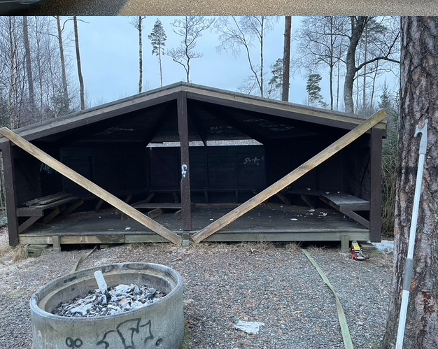 Gapahuken bærer preg av at den er blitt utsatt for litt hærverk. Klubben må både male over tagging (vi maler nok hele gapahuken) og gjøre noen mindre reparasjoner.